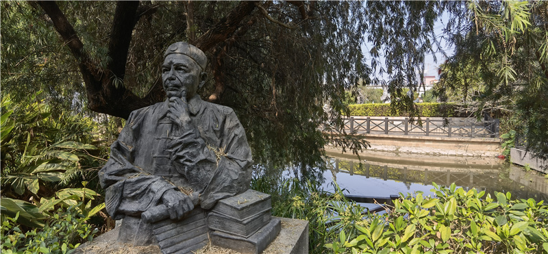我曾经到广州雕塑园游览过,哪里的雕塑艺术也非常精湛,其雕塑作品主要用于点缀公园。但这次进到潘鹤艺术园感觉完全有不同风格、不同体裁的艺术欣赏,本园作品主要是潘鹤大师一生的艺术作品。用园林来承托作品,其精华更能浮现淋漓精致的美,也可以看出园林包裹的艺术画廊的精湛设计。